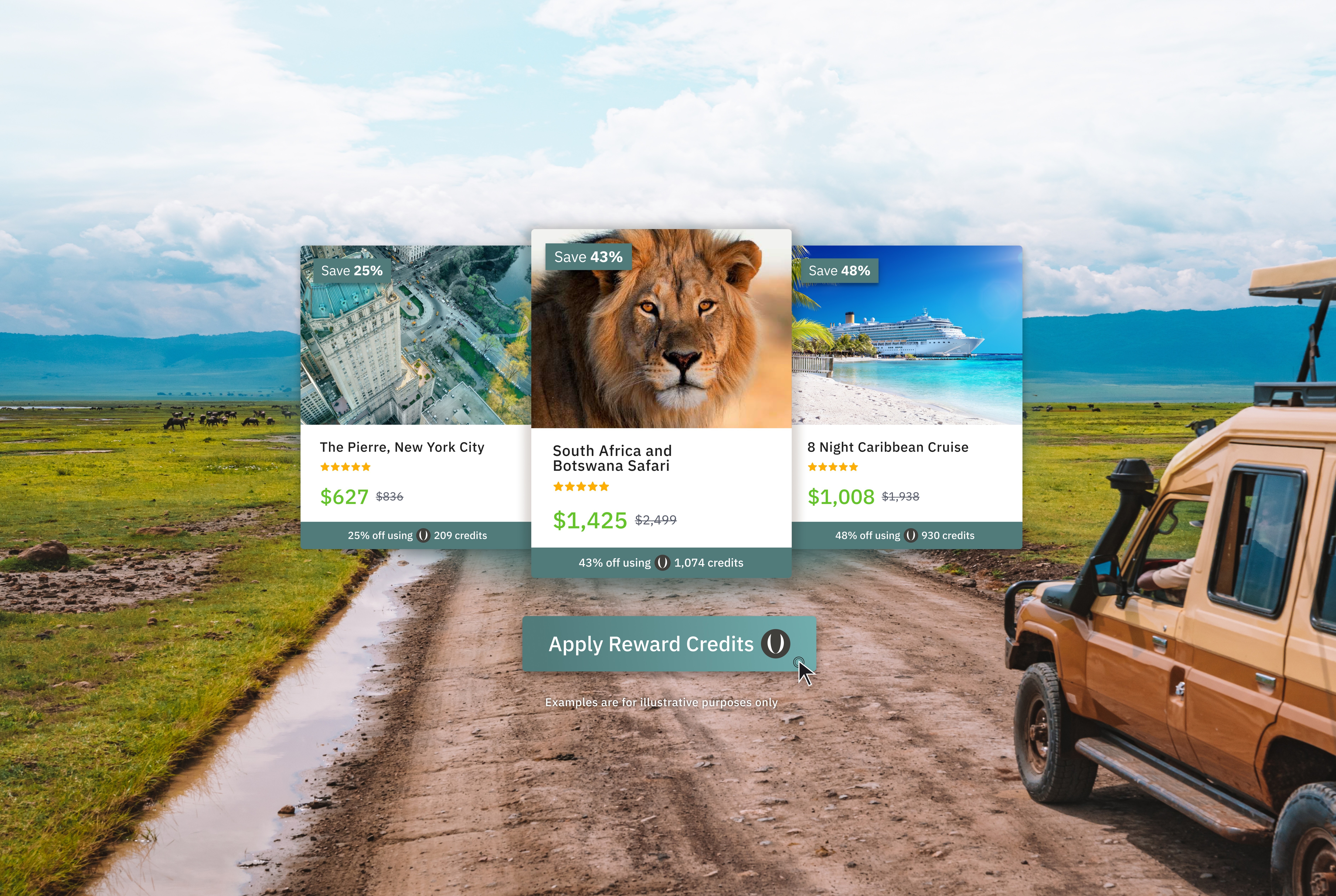 Redeem your Reward Credits for exclusive savings on cruises, hotels, unforgettable global experiences, and more.